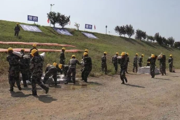图5 项目人员在使用防汛沙袋护坡