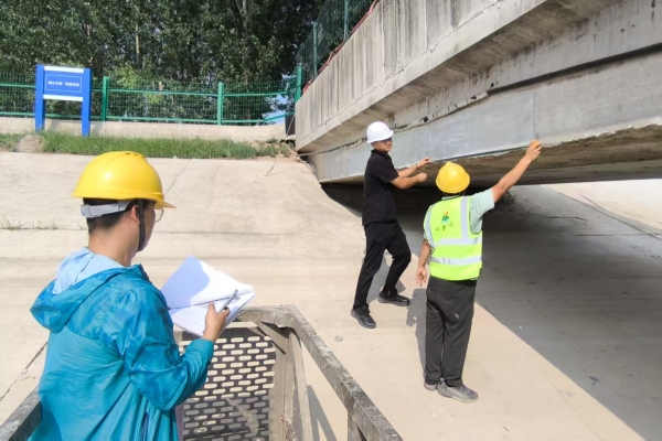 图7 阳谷县2024年度国家地下水超采综合治理项目人员在进行桥梁尺寸测量