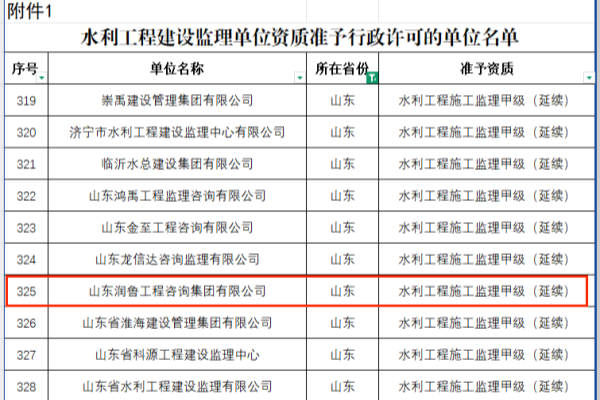 【喜讯捷报】祝贺山东润鲁工程咨询集团有限公司成功延续水利工程施工监理甲级资质