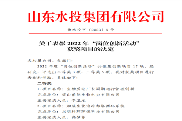 热烈祝贺山东润鲁集团在2022年度 “岗位创新活动”中取得佳绩