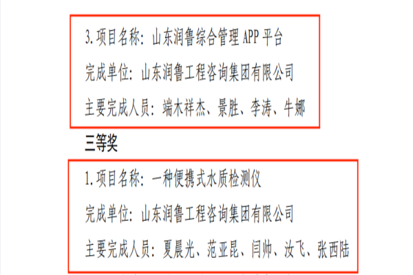 近日,山东水投集团公布了2022年“岗位创新活动”项目获奖情况,山东润鲁集团申报的“润鲁综合管理APP平台”和“一种便携式水质检测仪”分别荣获二等奖、三等奖。自2019年山东水投集团开展岗位创新活动以来,实现连续四年均有获奖。