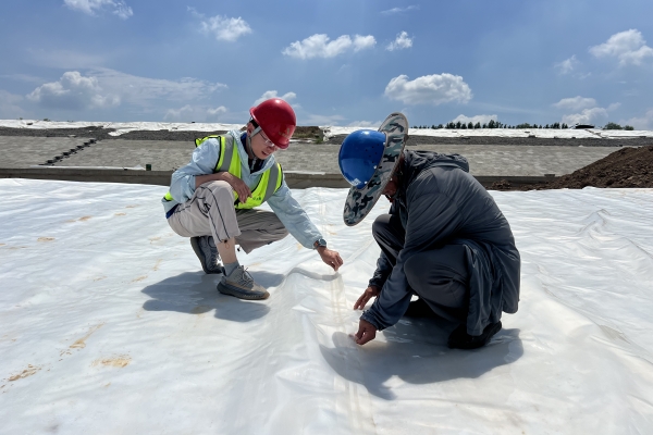 图2 夏津项目监理人员检查土工膜焊缝质量
