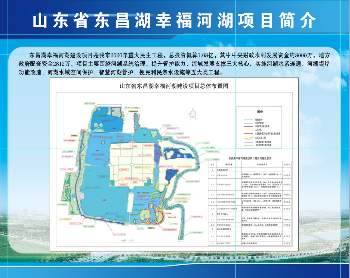 NEWS春回大地,万物复苏。作为2025年全国60个幸福河湖建设项目之一,由山东润鲁工程咨询集团有限公司代建及监理的山东省东昌湖幸福河湖建设项目正以冲刺姿态加速推进。截至目前,项目总体进度已完成70%,各项建设任务按节点高效落实。